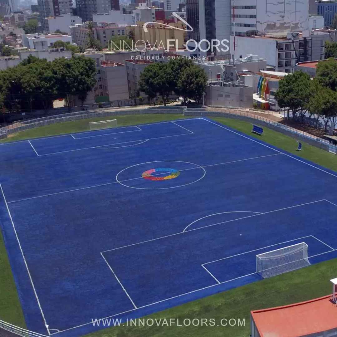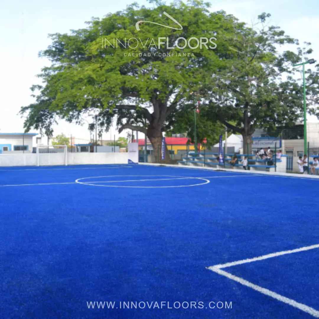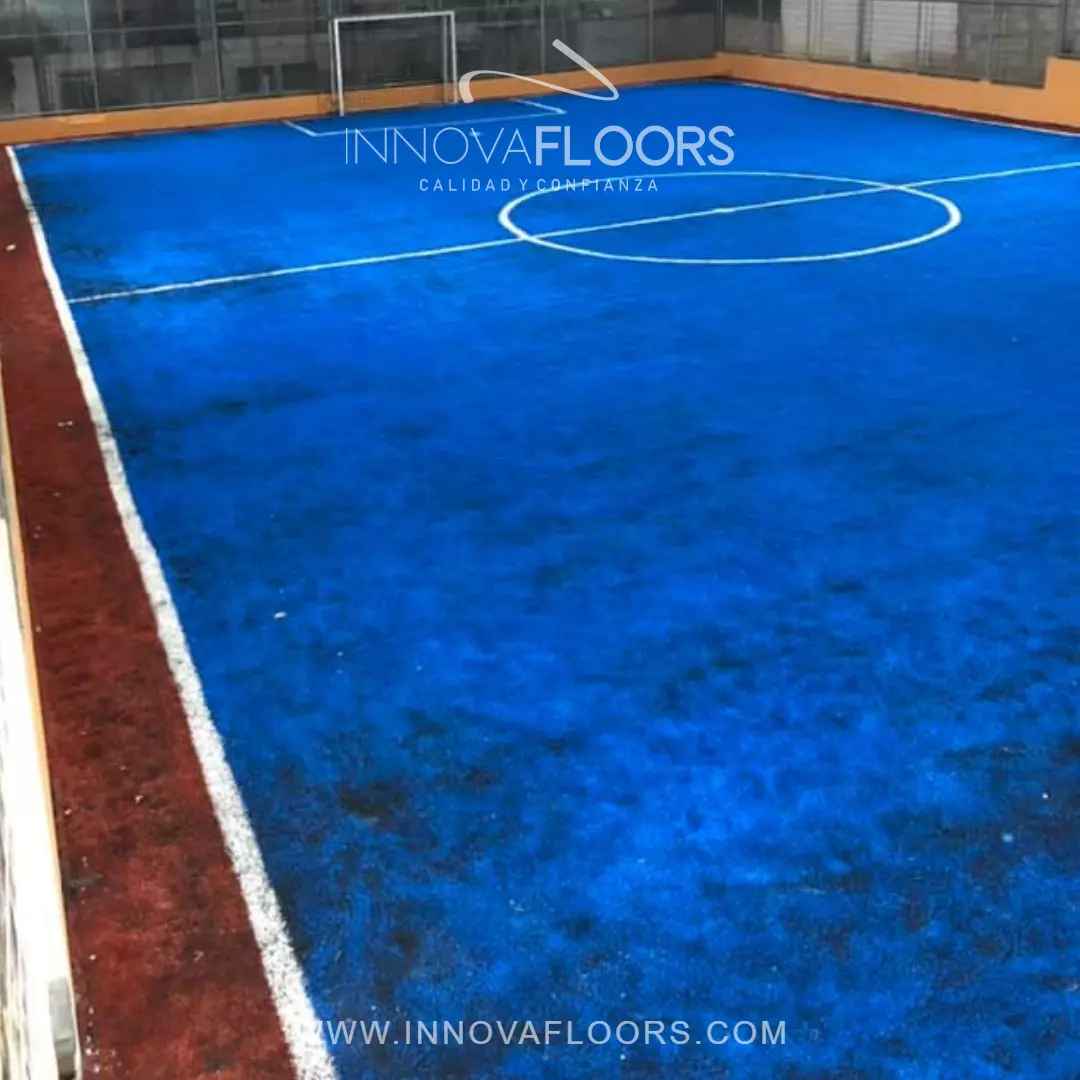 Las fibras utilizadas en nuestra Grama Sintetica Azul garantizan la durabilidad en el tiempo y en anclaje de las mismas para resistencia en uso de escenarios deportivos, siempre y cuando se cumpla con el mantenimiento recomendado del sistema instalado.