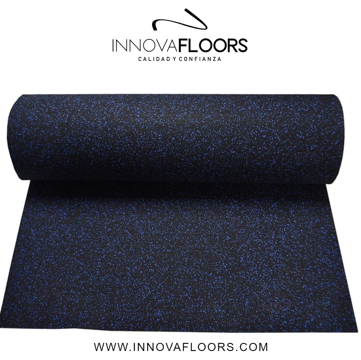 Piso en Rollo para Gimnasio Color Negro con Chispas Color Azul